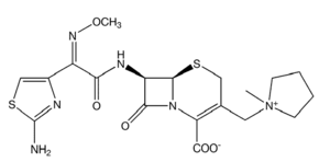 zeigt zwar eine neuartige Grundstruktur, aber die Substituenten sind ähnlich wie bei den neueren Cephalosporinen. Es besitzt eine hohe Aktivität gegen zahlreiche gramnegative Erreger. Die Wirkung auf