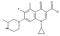 her weist Grepafloxacin eine enge Verwandtschaft mit Ciprofloxacin (CIPROBAY) auf: die Formeln der beiden Substanzen unterscheiden sich lediglich durch zwei Methylgruppen.[1]