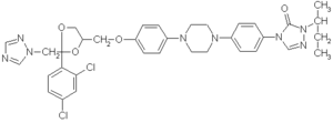 Triazolring. Itraconazol ist eine recht lipophile Substanz, es steht nicht zur parenteralen Anwendung zur Verfügung.