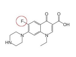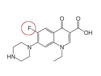 Chemische Struktur von Norfloxacin (ein Fluorchinolon)