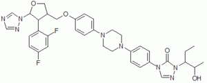 antimykotischen Therapie auch gegen diese seltenen Mykosen werden durch Posaconazol (NOXAFIL), ein neu entwickeltes Azol-Derivat, erweitert. Strukturell besteht eine große Ähnlichkeit mit Itraconazol