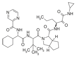 Angriffspunkt für Telaprevir und Boceprevir ist die NS3/A4-Protease des Virus, welche ein viral kodiertes Polyprotein in vier strukturelle und sechs nicht-strukturelle (NS) Proteine spaltet. Das Protein NS3/A4 ist eine Serin-Protease (NS3) zusammen mit einem Kofaktor (NSA4).