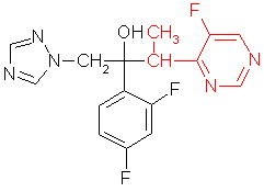 Lanosteroldemethylase aus A. fumigatus. Eine nochmalige Aktivitätssteigerung konnte durch den Ersatz eines Triazolrestes durch einen fluorierten Pyrimidinring erreicht werden. So ergibt sich